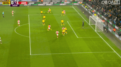第5分钟,萨卡禁区插上头球破门,阿森纳1-0领先狼队
