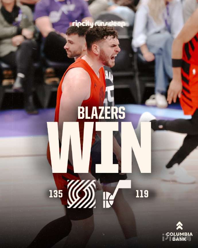 杨瀚森3分钟2分 开拓者135-119胜爵士