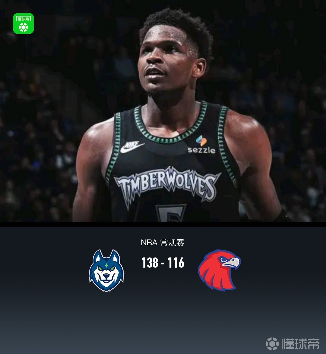 森林狼138-116大胜老鹰,爱德华兹30分,兰德尔三双,麦科勒姆38分