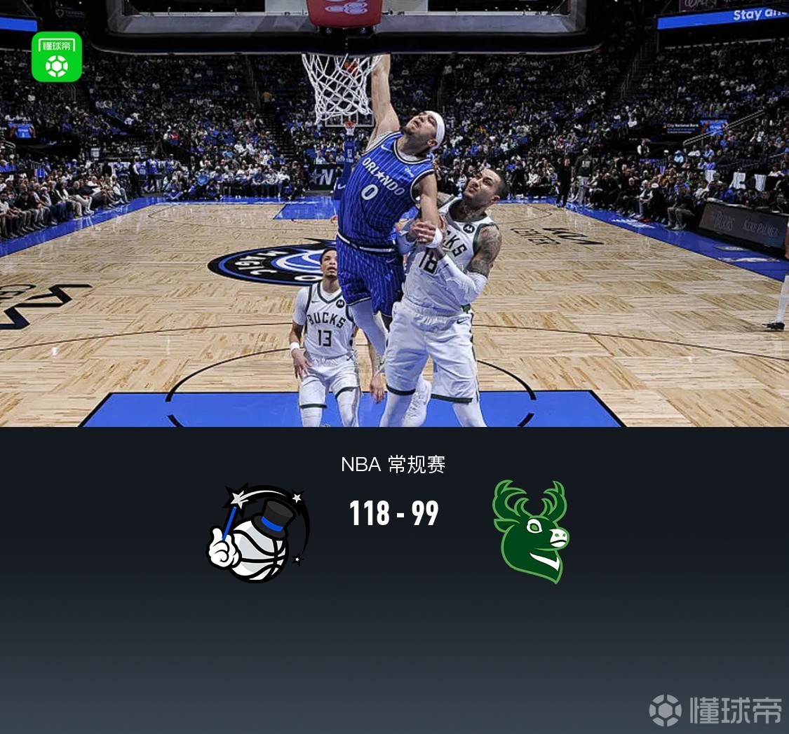 魔术118-99大胜雄鹿,贝恩25分,布莱克26分,波特28+7