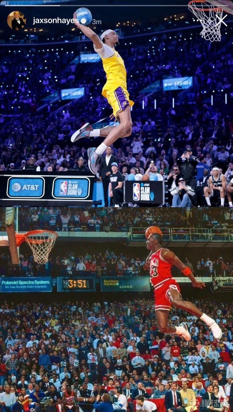 北京时间2月16日,参加完本届全明星三分大赛的海斯更新社媒,晒图致敬乔丹。