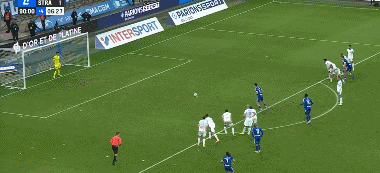 第90+6分钟,马赛补时送点,帕尼切利点射扳平,马赛2-2斯特拉斯堡