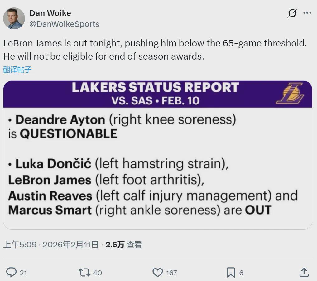 湖人宣布!詹姆斯休战!连续21年纪录正式终结